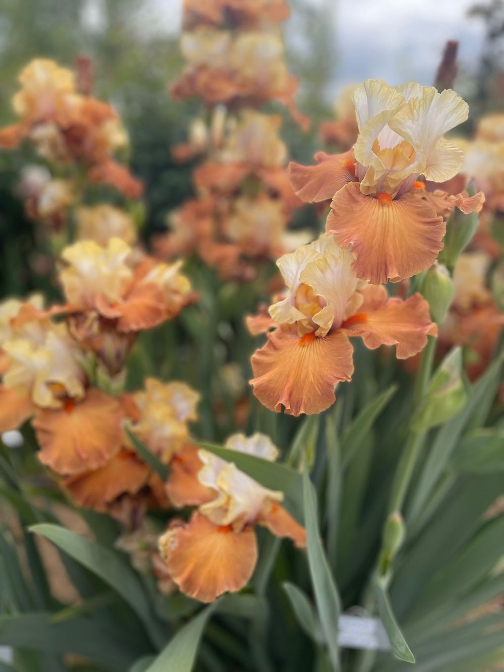 Early midseason, may rebloom. Abundant bloom, makes great clumps. Standards pale yellow blending darker to gold ends, medium lavender brushed at base. Falls are a blend of gold yellow and orange with an orange beard. Slight sweet fragrance.